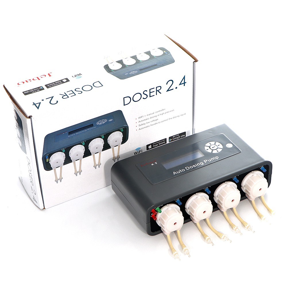 Jecod Doser 2.4 to najnowszy dozownik płynów popularnego producenta. Precyzyjny, automatyczny dozownik płynów, skonstruowany jest specjalnie pod kątem potrzeb akwarystycznych. Jego możliwości zostały rozbudowane względem wcześniejszych wersji, a sterowanie odbywa się manualnie lub poprzez WiFi za pomocą wygodnej aplikacji (IOS / Android)