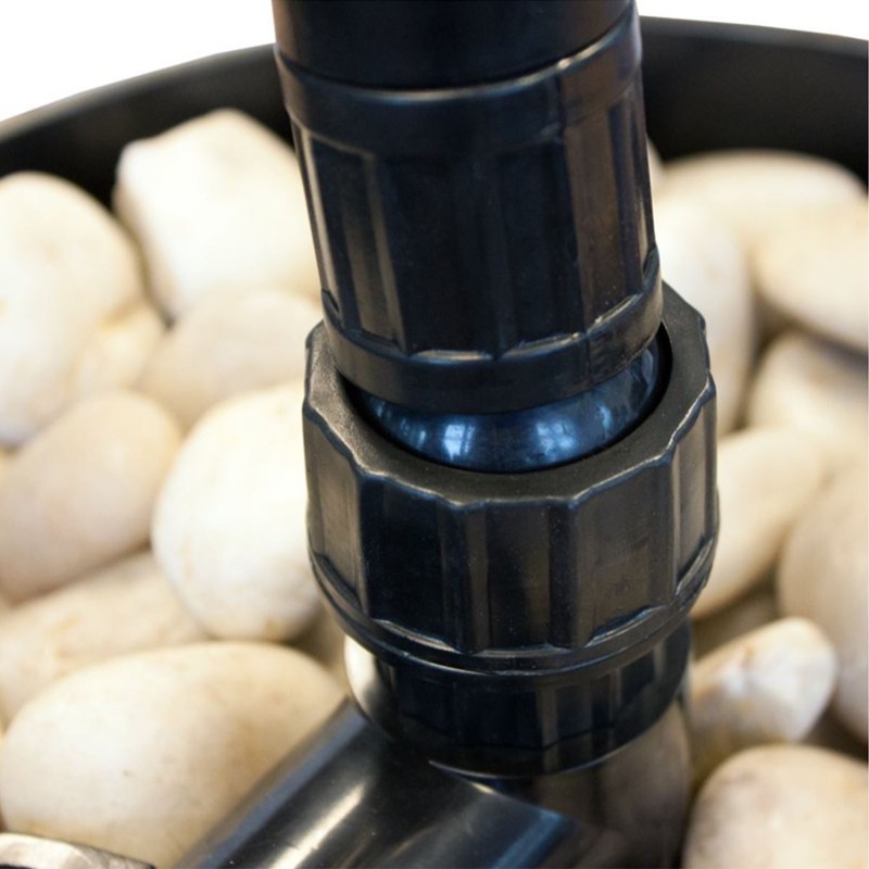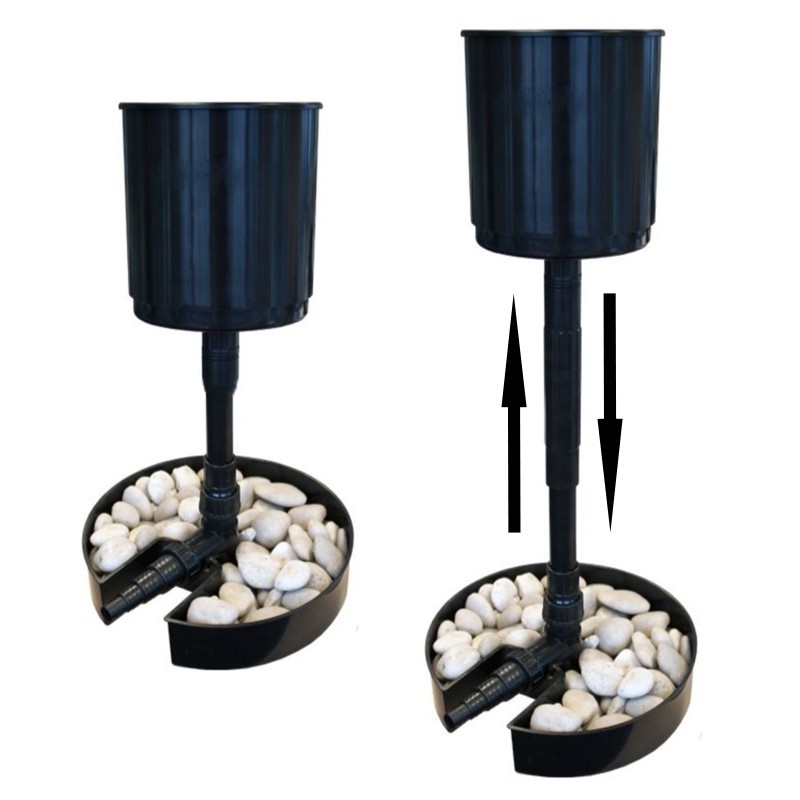 Filtr ma regulowaną wysokość i z łatwością obsłuży oczko wodne o głębokości od 65cm do 95cm.