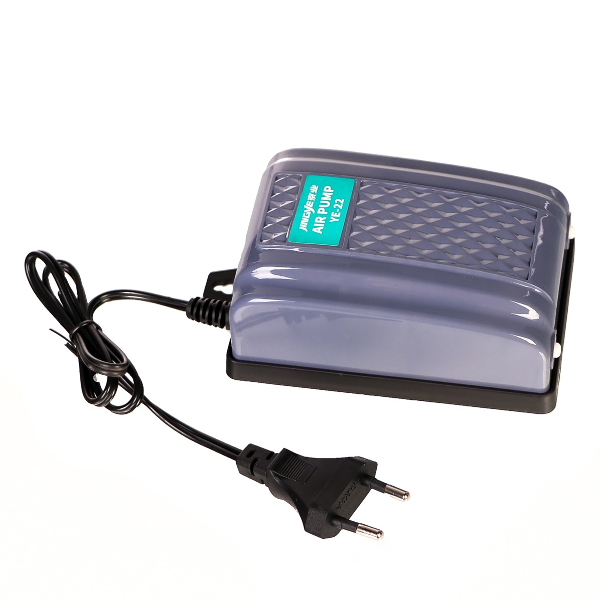 Napowietrzacz Jingye YE-22 Beetle Duo Air posiada dwa wyjścia, dzięki czemu jednocześnie może obsługiwać dwa kamienie napowietrzające lub dwa akwaria.