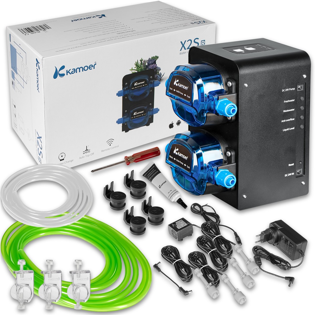 Kamoer X2SR to sterowana przez Wi-Fi pompa perystaltyczna przeznaczona do automatycznej wymiany wody i automatycznego uzupełniania wody w akwarium.