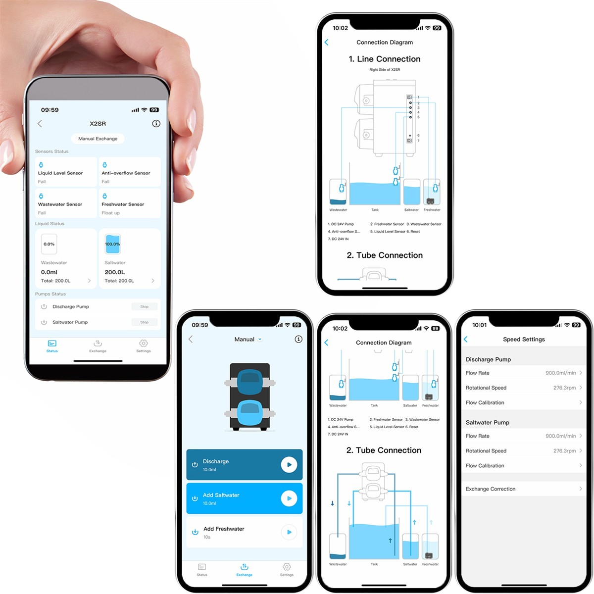Zamiast ręcznego przelewania dużych wiader wody w dni konserwacji, możesz zaprogramować swój X2SR tak, aby uzupełniał wodę o dowolnej porze i z dowolną prędkością. Urządzenie odlewa i wlewa wodę do akwarium. Możesz zmieniać wodę tak dużo lub "tak mało", jak chcesz, tak często, jak chcesz i tak szybko, jak chcesz (do 900 ml/min.), co daje lepszą kontrolę nad parametrami wody w akwarium i ogólną stabilnością.