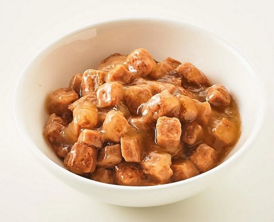 Mięso i produkty uboczne pochodzenia zwierzęcego (w tym cielęcina 10%), produkty uboczne pochodzenia roślinnego, zboża, składniki mineralne (0,45% siarczan wapnia)