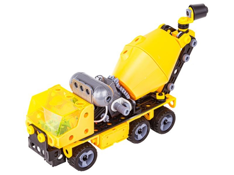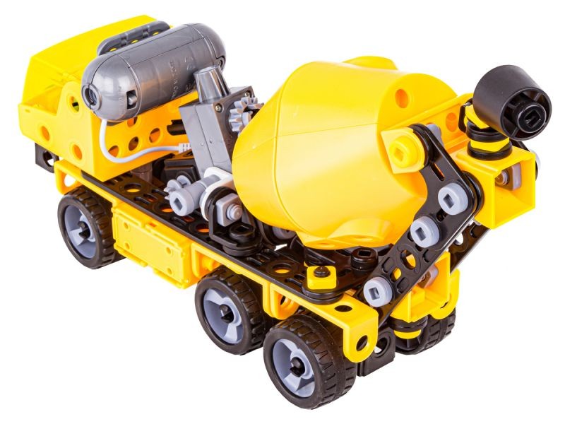 Obrotowa beczkaZestaw wyposażony został w specjalny mechanizm, dzięki któremu na przykład w przypadku zbudowania betoniarki możemy zyskać obrotową beczkę. Mechanizm można wykorzystać również w innych propozycjach z instrukcji. To dodatkowy efekt, który wzbogaci zabawę zestawem. | ![]() |