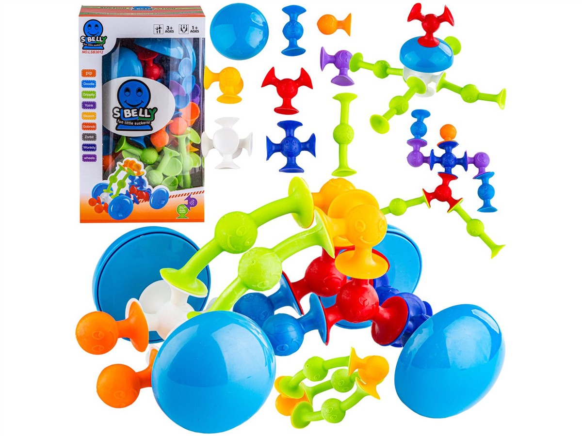 Silikonowe przyssawki to zabawka do samodzielnego zaprojektowania i zbudowania. Zestaw składa się z wielu silikonowych elementów - co pozwala na dowolne budowanie wszystkiego co wymyśli dziecko. Zabawka, która przemieni dziecko w małego architekta, pobudzi wyobraźnię i pomoże rozwinąć zdolności konstruowania. Przyssawki to niezwykłe klocki, które można łączyć zarówno ze sobą jak i z inną, gładką powierzchnią.