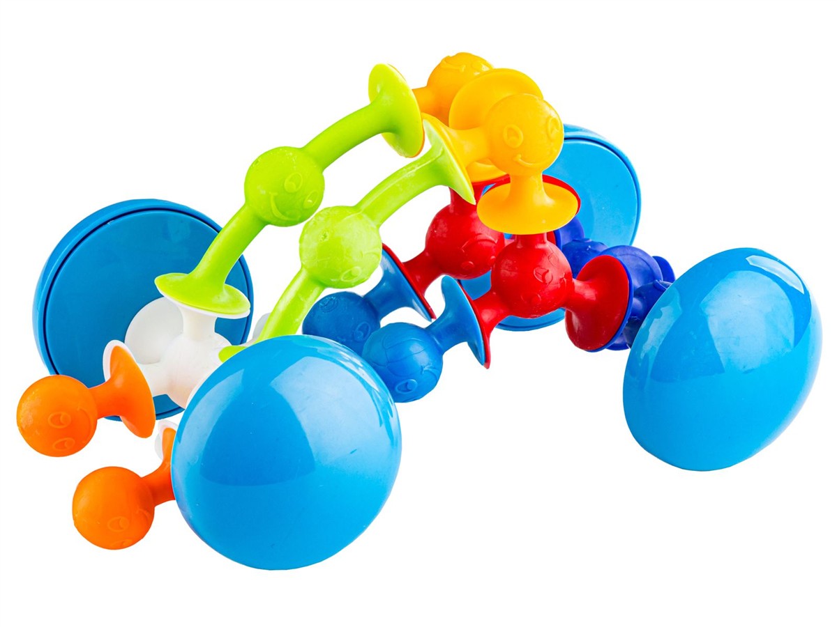 Przyssawki są elastyczne, wyginają się w różne strony i pozwalają na budowanie dowolnych układów. Eksperymentuj i sprawdź jak wesołe przyssawki zabawią dziecko w wannie, samochodzie przy stole i gdzie tylko zechcesz :) To super zabawa a po odklejeniu zabawka nie pozostawia żadnych śladów.
