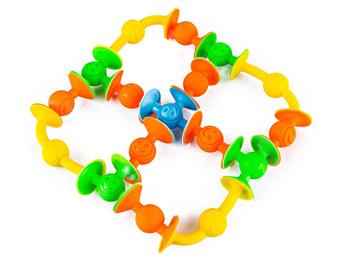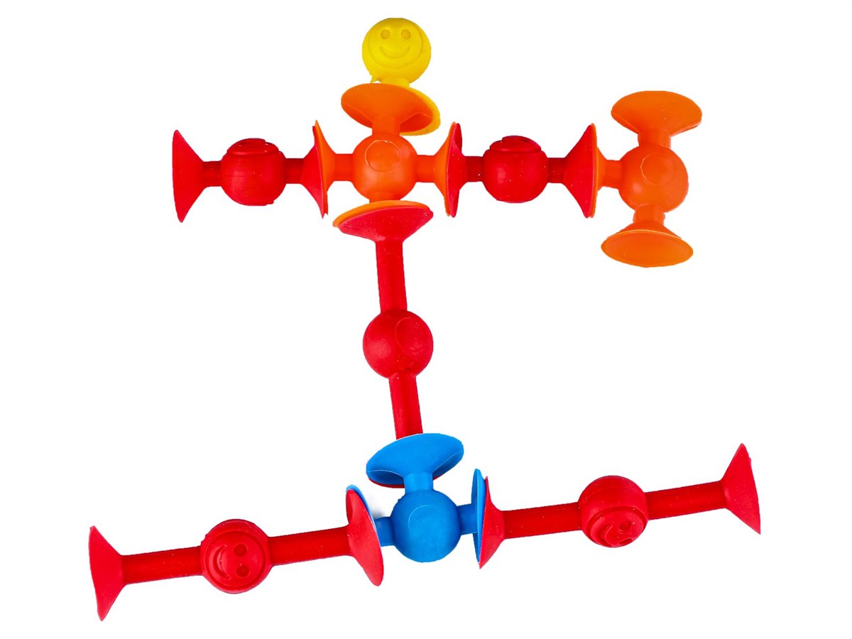 Przyssawki są elastyczne, wyginają się w różne strony i pozwalają na budowanie dowolnych układów. Eksperymentuj i sprawdź jak wesołe przyssawki zabawią dziecko w wannie, samochodzie przy stole i gdzie tylko zechcesz :) To super zabawa a po odklejeniu zabawka nie pozostawia żadnych śladów.