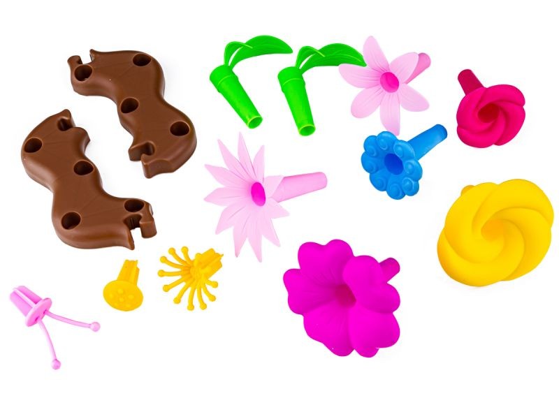 Jest to zabawka do samodzielnego zaprojektowania i zbudowania. Zestaw składa się z wielu kolorowych kwiatowych klocków i pozwala na dowolne budowanie kwiecistej rabatki. Zabawka, która przemieni dziecko w małego architekta od ogrodów, pobudzi wyobraźnię i pomoże rozwinąć zdolności konstruowania. Super zestaw zapewni każdemu dziecku mnóstwo wesołej zabawy.