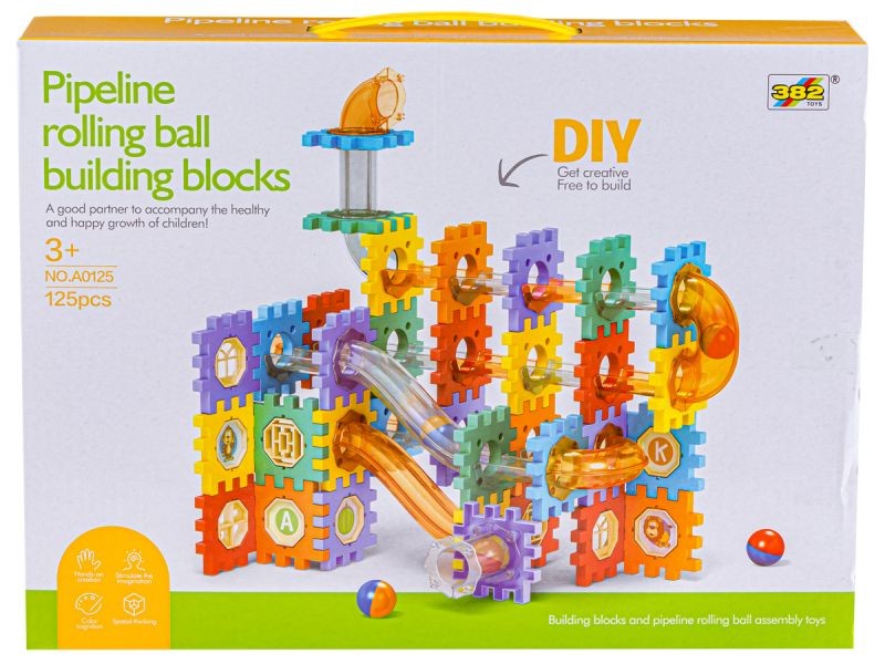 Kolorowe klocki konstrukcyjne to zabawka do samodzielnego zaprojektowania i zbudowania. Zestaw składa się z wielu części i pozwala na budowanie toru dla kulek o dowolnym układzie. Zabawka, która przemieni dziecko w małego architekta, pobudzi wyobraźnię i pomoże rozwinąć zdolności konstruowania.