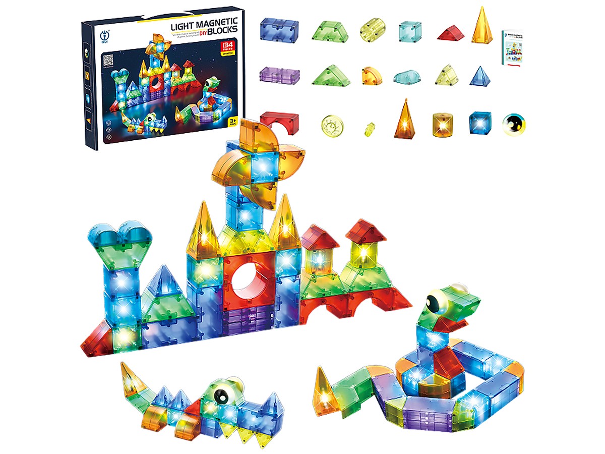 Kolorowe klocki magnetyczne to zabawka do samodzielnego zaprojektowania i zbudowania. Zestaw składa się z wielu kolorowych, figur z magnesami oraz pozwala na dowolne budowanie wszystkiego co wymyśli dziecko. Zabawka, która przemieni dziecko w małego architekta, pobudzi wyobraźnię i pomoże rozwinąć zdolności konstruowania.