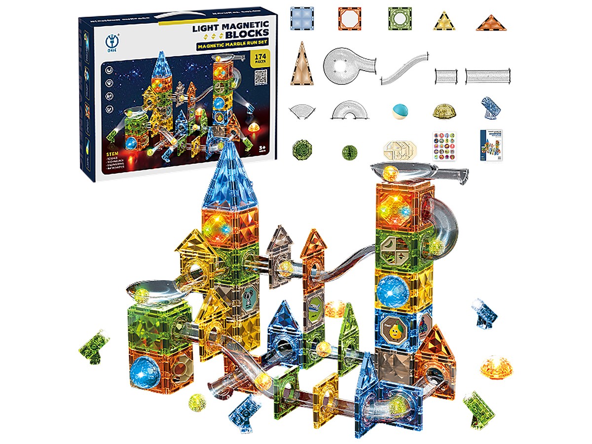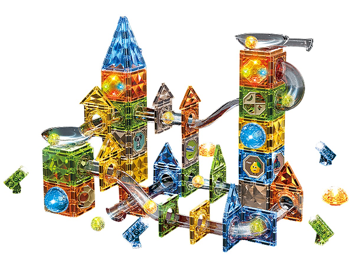 Kolorowe klocki magnetyczne to zabawka do samodzielnego zaprojektowania i zbudowania. Zestaw składa się z wielu kolorowych części i pozwala na budowanie toru dla kulek o dowolnym układzie. Zabawka, która przemieni dziecko w małego architekta, pobudzi wyobraźnię i pomoże rozwinąć zdolności konstruowania.