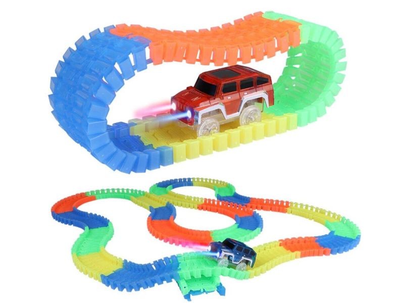 Ten super zjazd posiada mnóstwo przeszkód, przez co jazda po nim tym wyścigowym świecącym autkiem jest absolutnie odjazdowa! To prawie jak off-road, pełen ekstremalnych zakrętów, podjazdów, pętli i zjazdów.