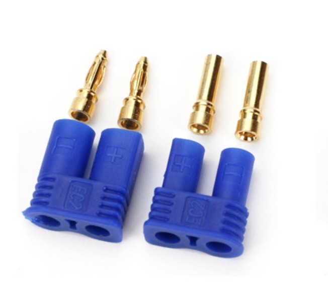 Para oryginalnych konektorów prądowych EC-2 (gniazdo + wtyczka) do samodzielnego zarobienia, wyprodukowana przez firmę MSP.