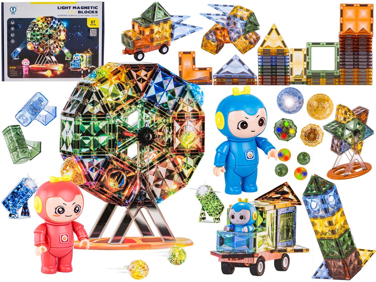 Kolorowe klocki magnetyczne to zabawka do samodzielnego zaprojektowania i zbudowania. Zestaw składa się z wielu kolorowych, figur z magnesami oraz pozwala na dowolne budowanie wszystkiego co wymyśli dziecko. Zabawka, która przemieni dziecko w małego architekta, pobudzi wyobraźnię i pomoże rozwinąć zdolności konstruowania.