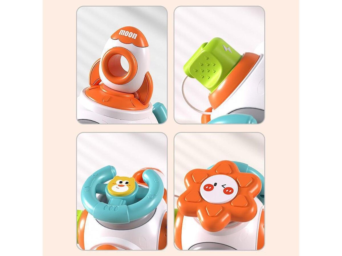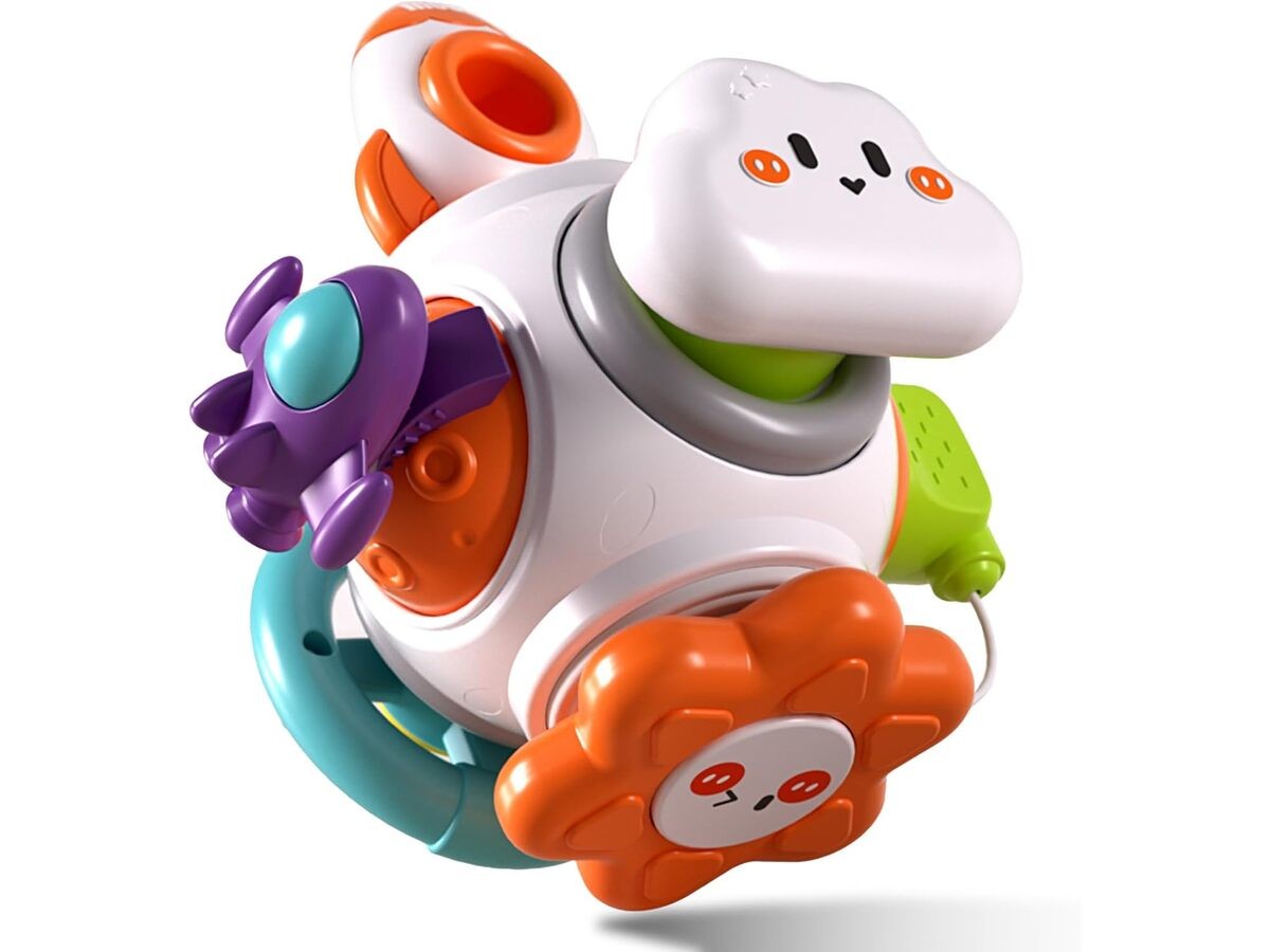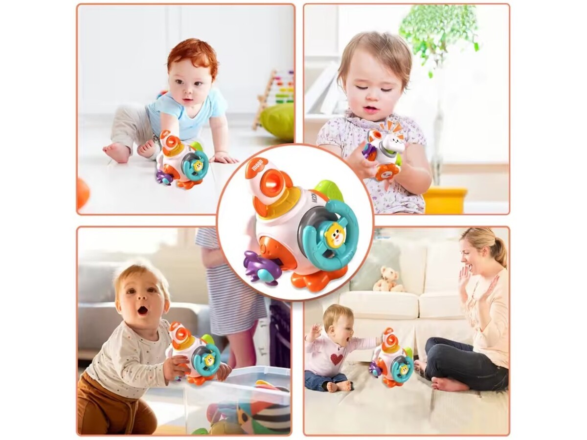 Jedna zabawka a aż sześć stref interakcji. Każda strona kostki to nowa przygoda dla Twojego malucha. Zabawka posiada ruchome elementy, przyciski, klikające dźwięki oraz kształty do obracania: