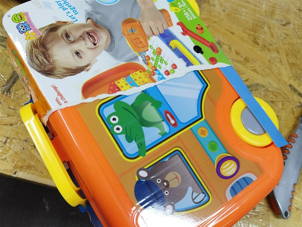 Kreatywna mozaika w walizce w zestawie z śrubokrętem i wkrętarką przypadnie do gustu każdemu małemu majsterkowiczowi.