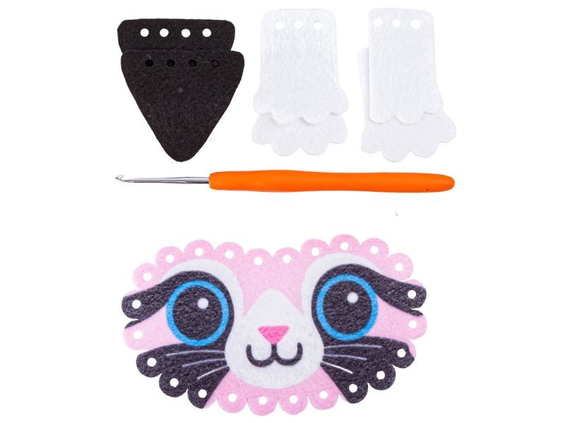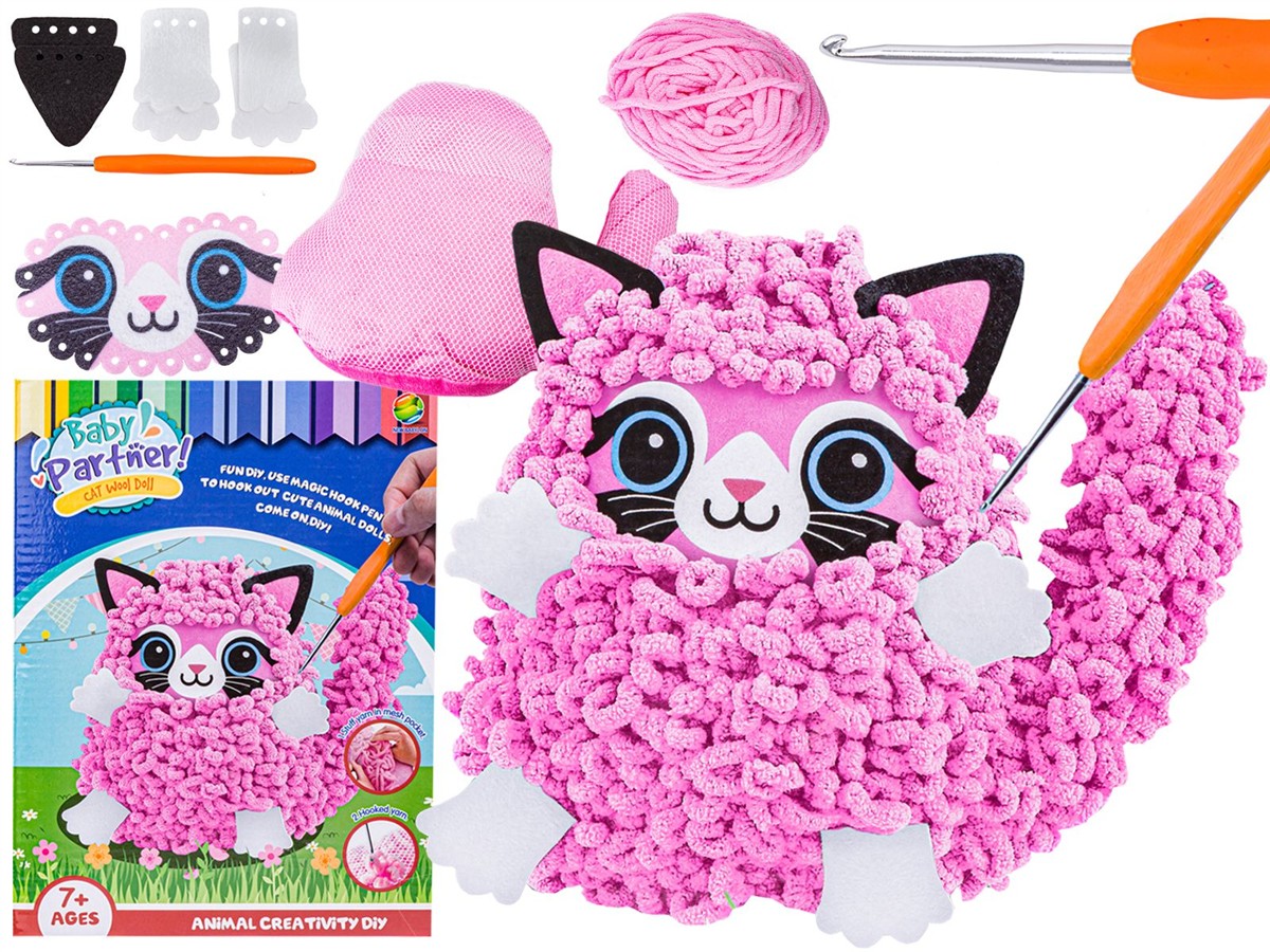 Bezpieczna zabawaMaskotki DIY wykonane zostały z przyjemnych materiałów. Główny korpus zabawki posiada siatkę, za którą umieszczamy włóczkę. Następnie za pomocą szydełka wyciągamy włóczkę tworząc w ten sposób sierść naszego pluszaka. | ![]() |