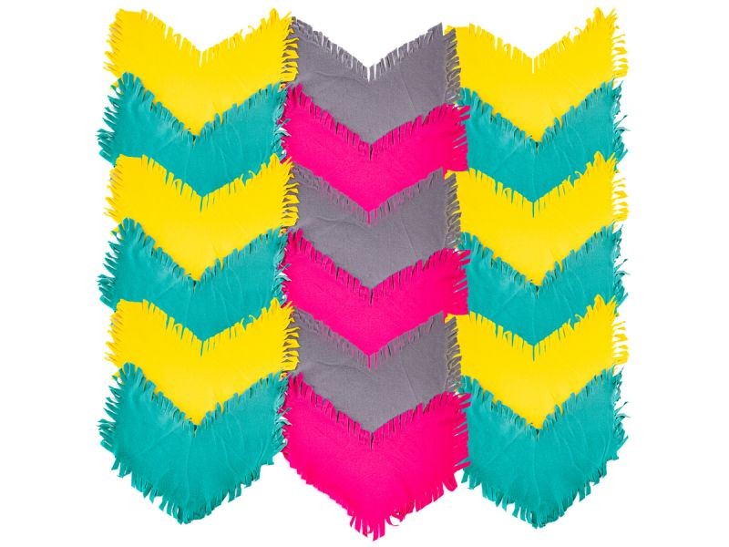 Zestaw składa się z 18 kawałków materiału, które należy ze sobą związać. Układ kolorów jest dowolny i zależy tylko od ciebie.