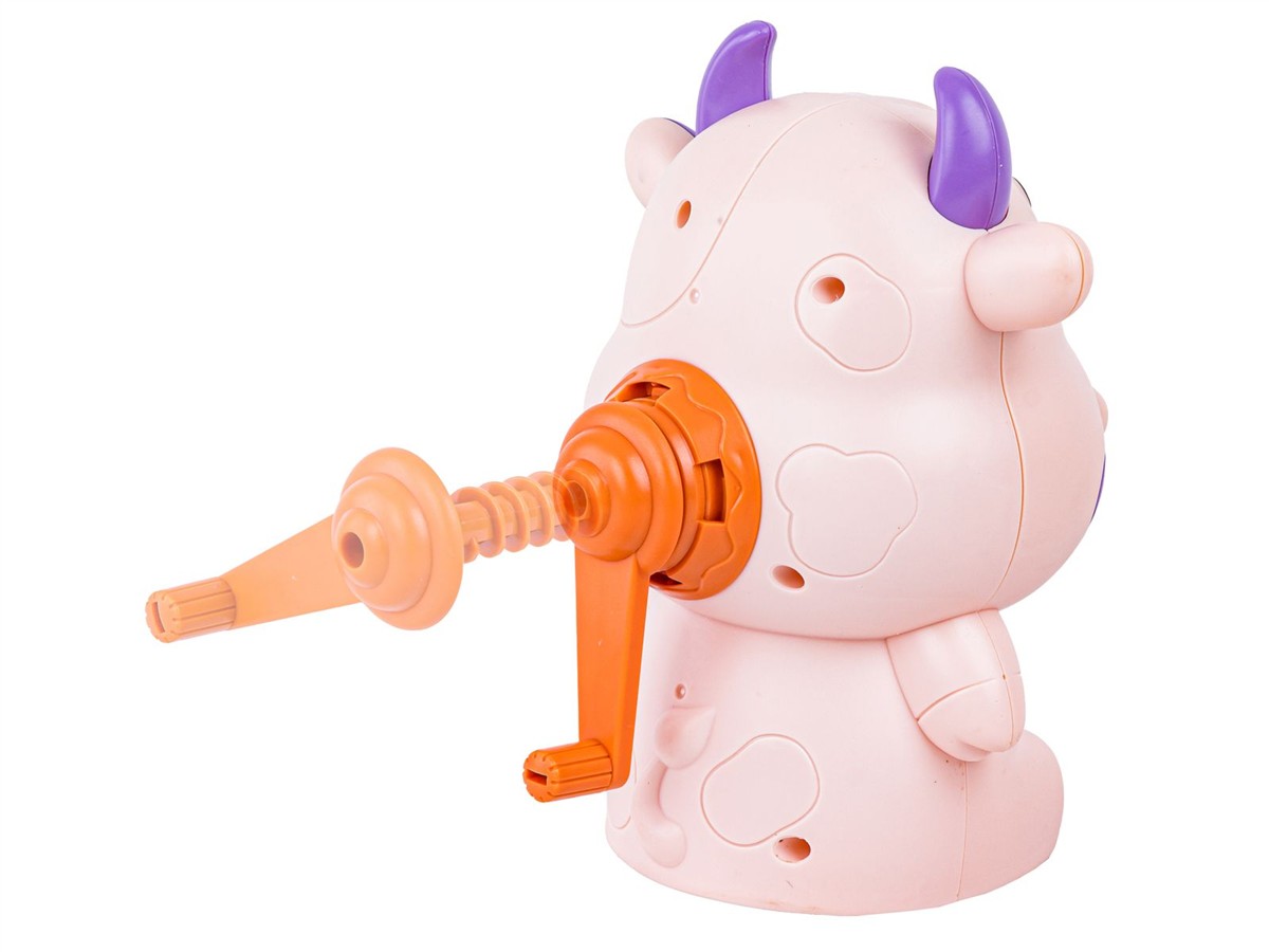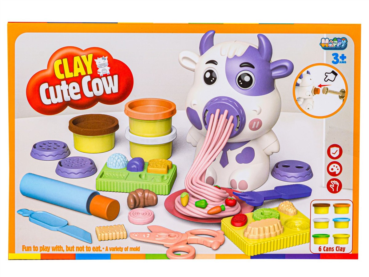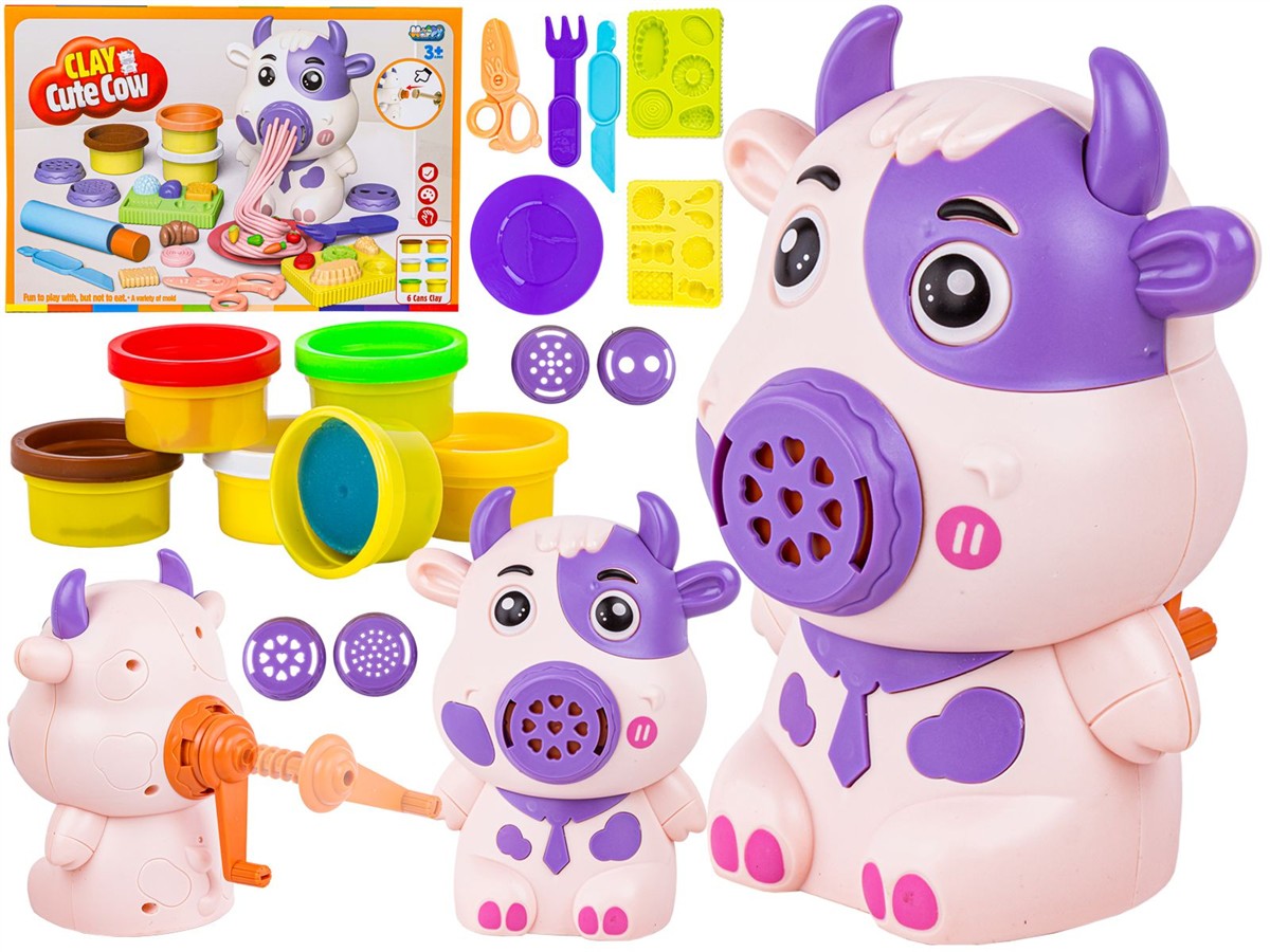 Zestaw z uroczą krówką zapewni Twojemu dziecku sporo kreatywnej zabawy. To fantastyczny pomysł dla dzieci, które lubią zabawę masą plastyczną. Zwierzątko może posłużyć jednocześnie za makaronową maszynkę do wyciskania. To super wciągające.
