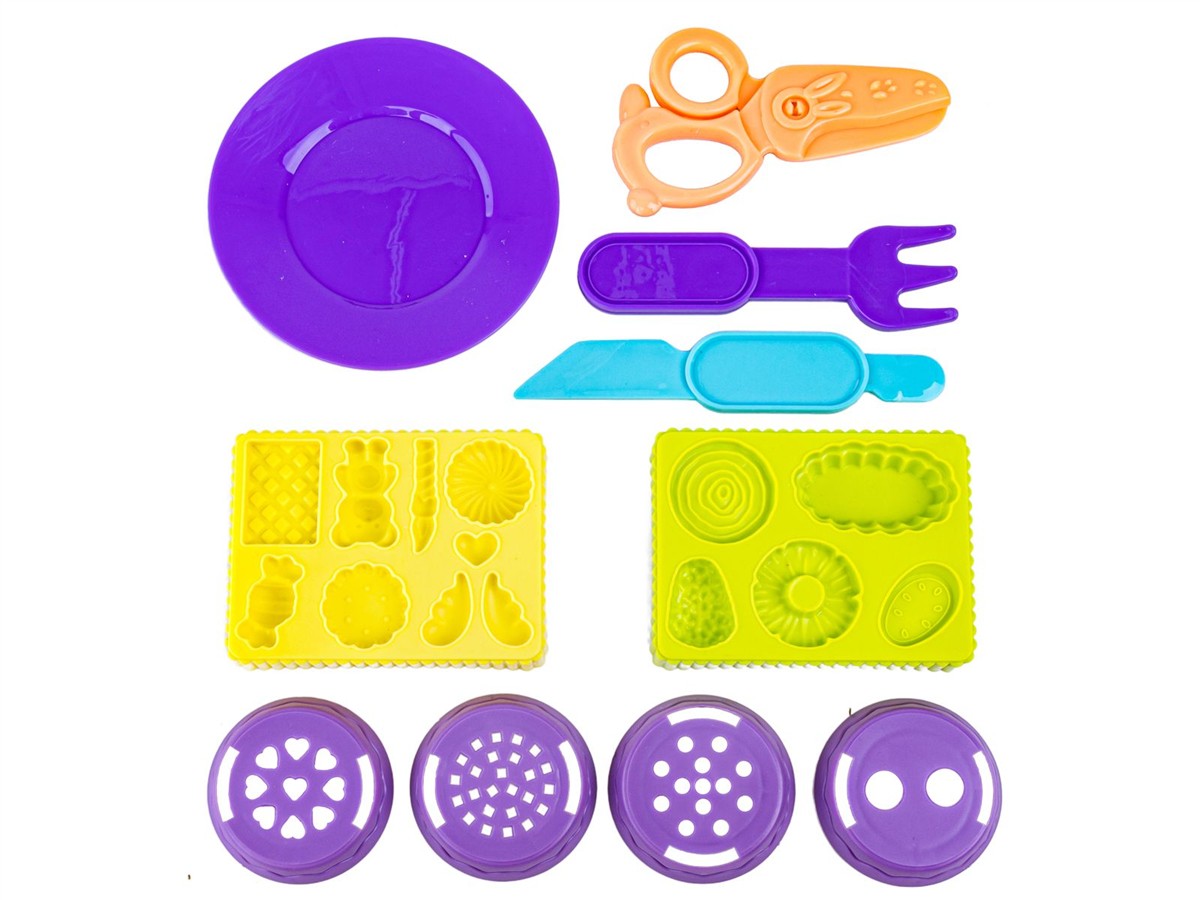 Zabawa masą plastyczną to wspaniała zabawa dla każdego dziecka. Nasz zestaw pozwala na odciśnięcie mnóstwa różnego rodzaju smakowitych dań, jak np. ciastka czy babeczki. Dzięki załączonym narzędziom możemy wykończyć je i zadbać o szczegóły.