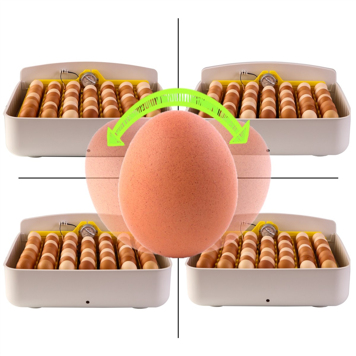 Wylęgarnia posiada wbudowany silniczek, który będzie poruszał kratką wewnątrz pojemnika. Jajka są pochylane w lewo i w prawo pod kątem 45st. automatycznie co dwie godziny. Dodatkowo, na wyświetlaczu znajduje się stoper, który odlicza czas do nastepnego obrotu jaj.