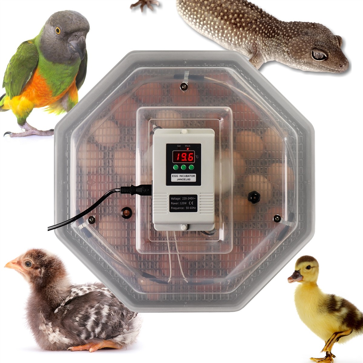 Sprzęt spełnia wszystkie wymagania jakich mogą oczekiwać użytkownicy i co najważniejsze wylęgające się ptaki. Jajka łatwo umieścisz wewnątrz, a dzięki transparentnej obudowie zawsze możesz podejrzeć proces inkubacji. Szybko zaprogramujesz odpowiednią temperaturę, a wbudowany termostat będzie ją samoczynnie utrzymywać.