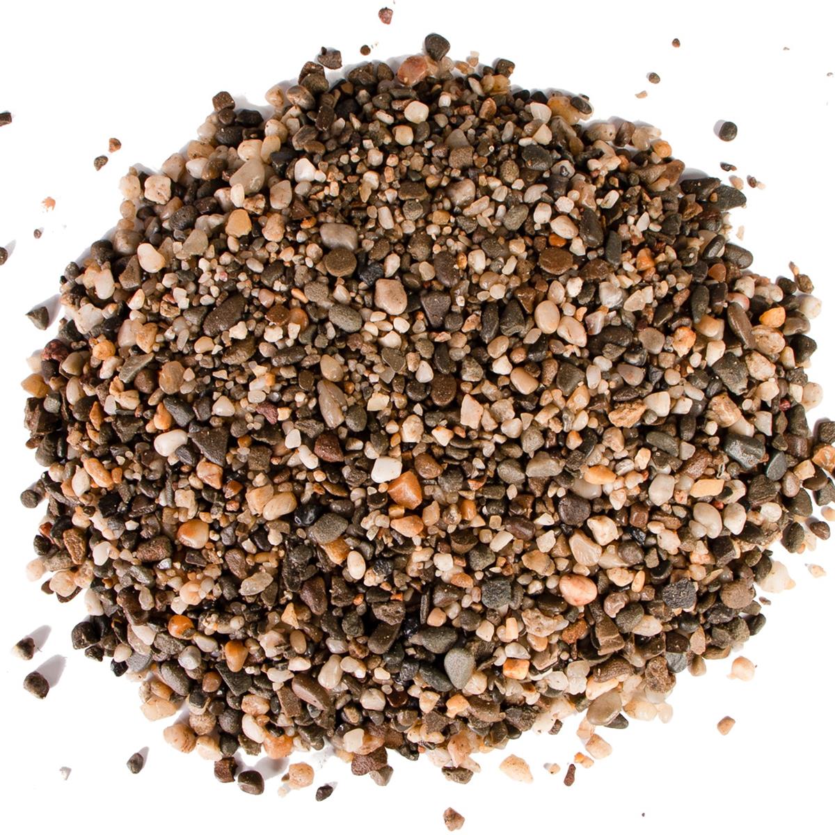 Kruger Meier River Serenity to mieszanka naturalnych kamyków o frakcji 2–8 mm, w odcieniach brązu, beżu i szarości. Dzięki zróżnicowanej granulacji oraz naturalnemu wyglądowi świetnie imituje dno rzeczne, wprowadzając do akwarium spokój i autentyczność.