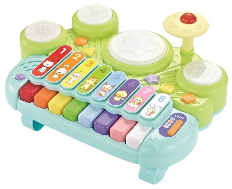 W zestawie znajdziesz wszystko, o czym może marzyć muzykalny maluch a mianowicie oszałamiająco kolorowe organki z wieloma funkcjami i efektami. Żywa kolorystyka oraz ogromna ilość efektów dźwiękowych i świetlnych, naprawdę mocno angażują w muzyczną zabawę i rozwijają talent.