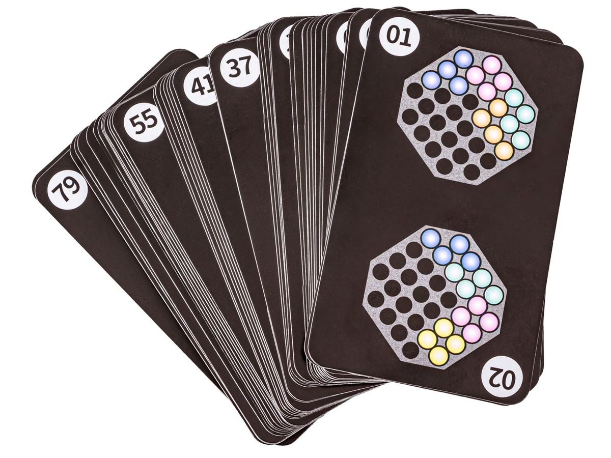 Gra przeznaczona jest dla 2 graczy. Losujemy jedną kartę i kładziemy ją w wyznaczonym miejscu na środku planszy. Celem gry jest jak najszybsze ułożenie układu z karty. Gracz, który jako pierwszy ułoży wybrany wzór zabiera kartę. Uwaga: układ klocków musi być identyczny jak ten na karcie. Na koniec gry liczymy zebrane przez graczy karty. Osoba, która ma ich najwięcej wygrywa. Gra zawiera sporo kart z zadaniami, dzięki czemu zabawa nie znudzi się szybko.