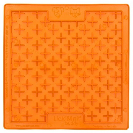 LickiMat Buddy posiada labiryntowe kieszenie i jest idealna do serwowania takich przekąsek jak specjalne dla psów masło orzechowe czy rozmoczone ciasteczka.