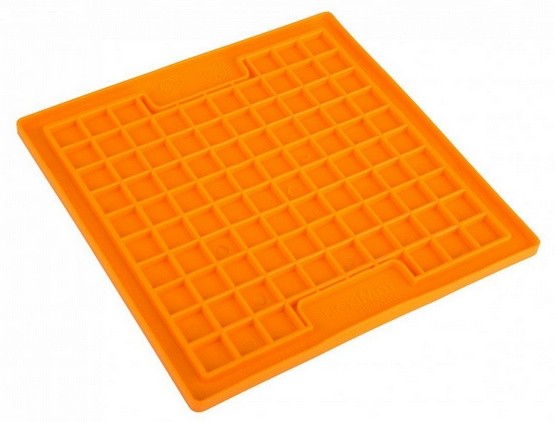LickiMat Playdate posiada kwadratowe kieszenie i jest idealna do serwowania większych kawałków jedzenia jak mielone mięso lub ryby.