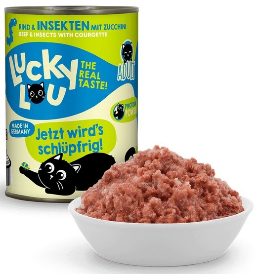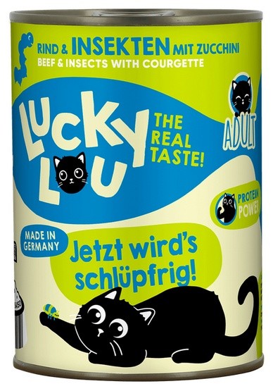 Gdzie indziej jest nudne standardowe jedzenie - Lucky Lou jest dostępne w 18 różnych odmianach smakowych w saszetkach 125 g oraz w puszkach 200 g i 400 g. Karma produkowana w Niemczech.