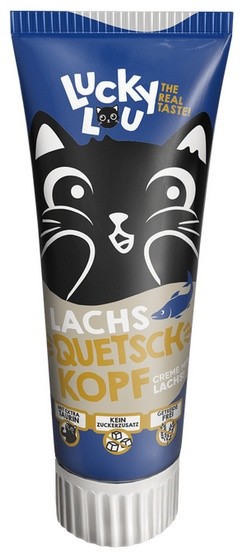 Lucky Lou Quetschkopfe rozpieszcza koty w wielu pysznych odmianach. Aromatyczna kiełbasa z wątróbki, pyszny łosoś, pyszny serek, miękka śmietanka mleczna i słód do przekąszenia czekają na Twojego kota. Podaruj mu dodatkową porcję witamin – jest ona dostępna także dla kociąt. Przysmaki Lucky Lou Quetschkopfe są dostępne w zamykanych tubach – bardzo łatwo je porcjować i przechowywać.