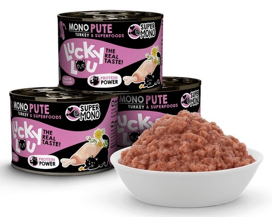 Lucky Lou Supermono jest karmą pełnoporcjową dla kotów. Nie zawiera zbóż ani cukru. Mokre, wysokiej jakości jednobiałkowe jedzenie, które przypadnie do gustu kocim smakoszom, również wrażliwym.