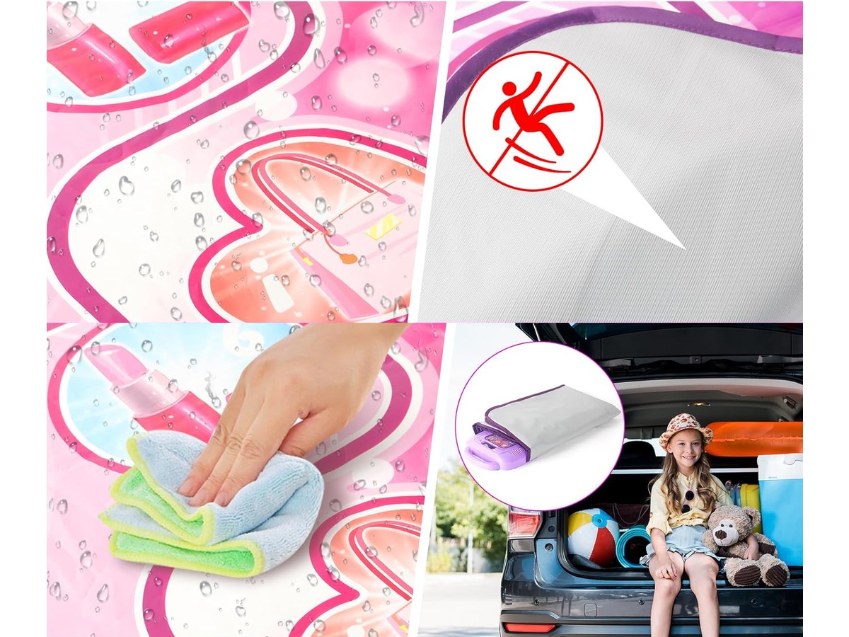 Bezpieczny materiałAntypoślizgowy materiał minimalizuje ryzyko kontuzji podczas zabawy. Dodatkowo materiał jest wodoodporny i bardzo łatwy w czyszczeniu. |