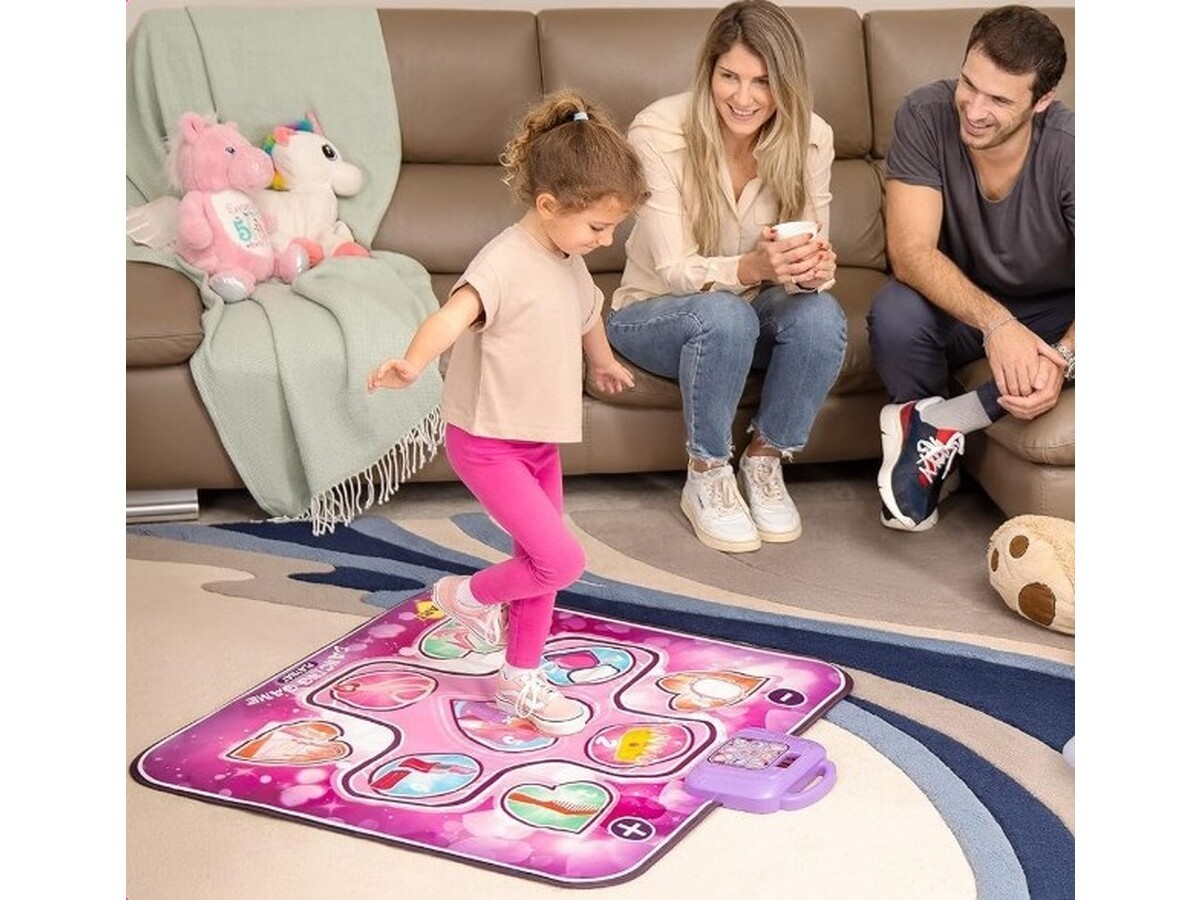 Muzyczna mata taneczna to niezwykła zabawka, która wspiera rozwój Twojego dziecka. Wyposażona w dodatkowe efekty świetlne mata zapewnia niezapomniane wrażenia z zabawy a dynamiczna, rytmiczna muzyka pobudza do tańca.