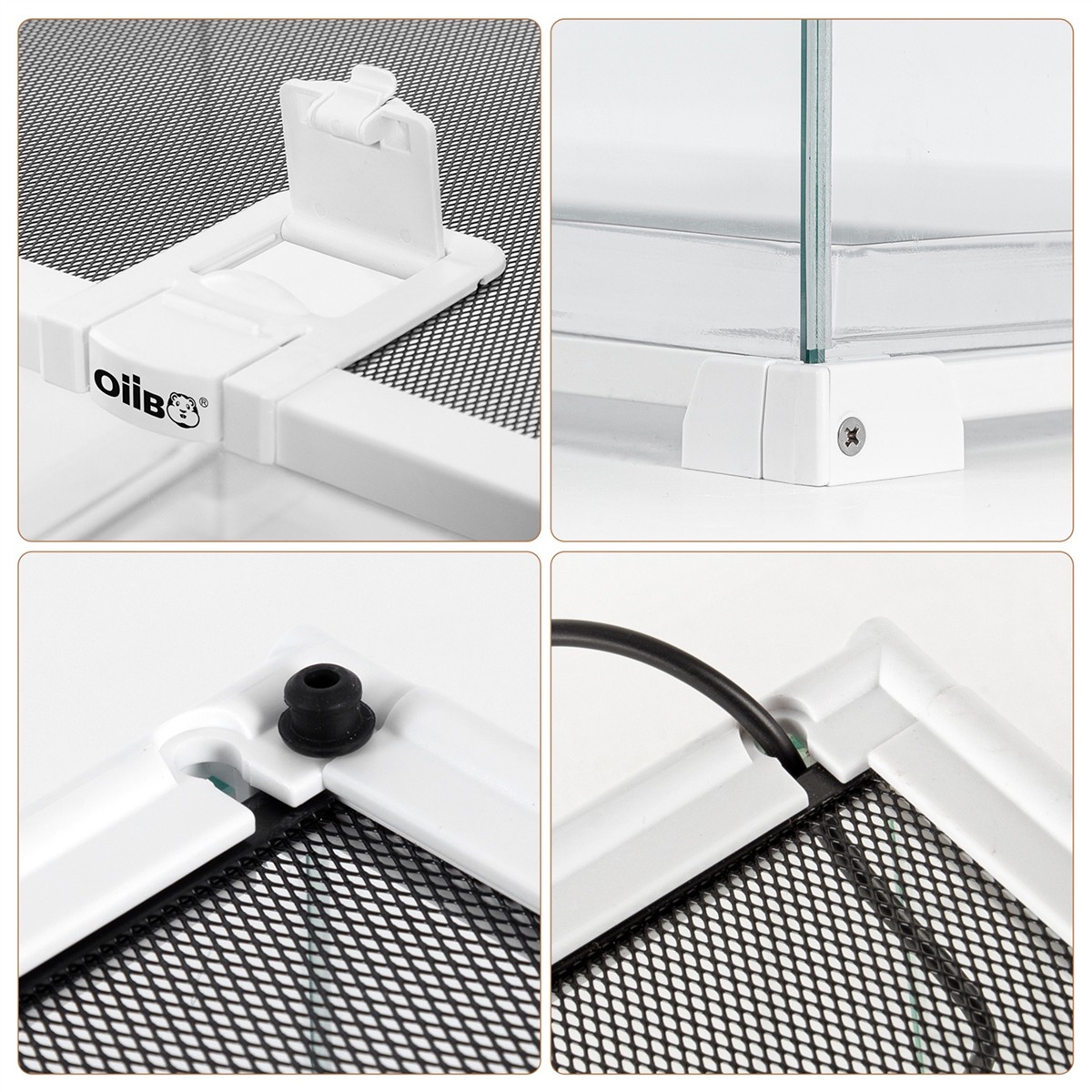 Terrarium OiiBO zaprojektowane jest z myślą o hodowli zwierząt o różnych wymaganiach środowiskowych. Umożliwia łatwy montaż oraz obserwację pupila w pełnym widoku 360°. To znacznie wpływa na kontakt ze zwierzęciem. Widok na terrarium z wszystkich stron oraz siatka na górnej pokrywie zapewniają duży dostęp do światła i promieniowania UVB.