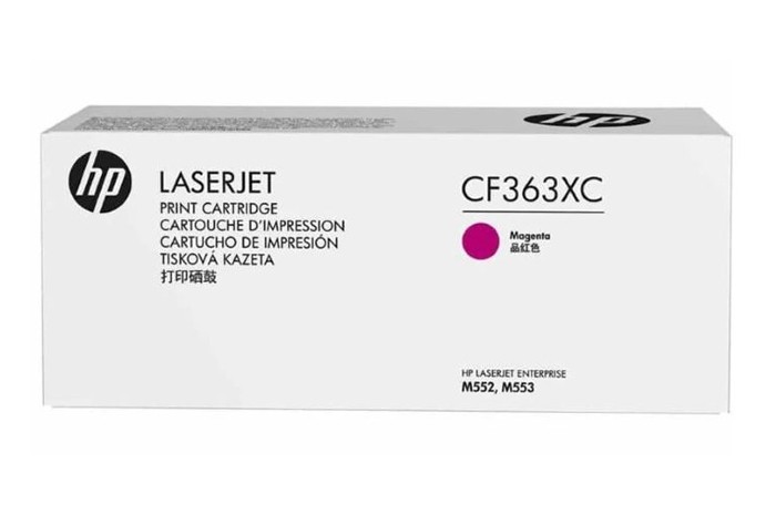 Oryginalny toner HP przeznaczony do modeli: HP Color LaserJet Enterprise M552dn (B5L23A), M553dn (B5L25A), M553n (B5L24A), M553x (B5L26A), M577dn MFP (B5L46A), M577f MFP (B5L47A) HP Color LaserJet Enterprise Flow M577c MFP (B5L54A) Odpowiednik: 508X CF363X 508XH CF363XH