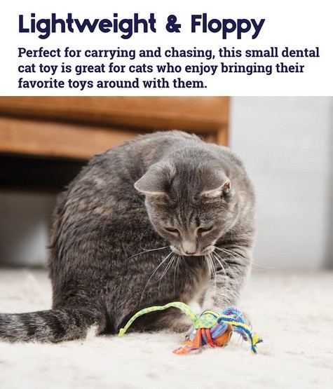 Piłka szmacianka jest kolorową plątaniną wytrzymałych sznurków i tasiemek, która zapewni fantastyczną zabawę każdemu kociakowi bez względu na wiek.