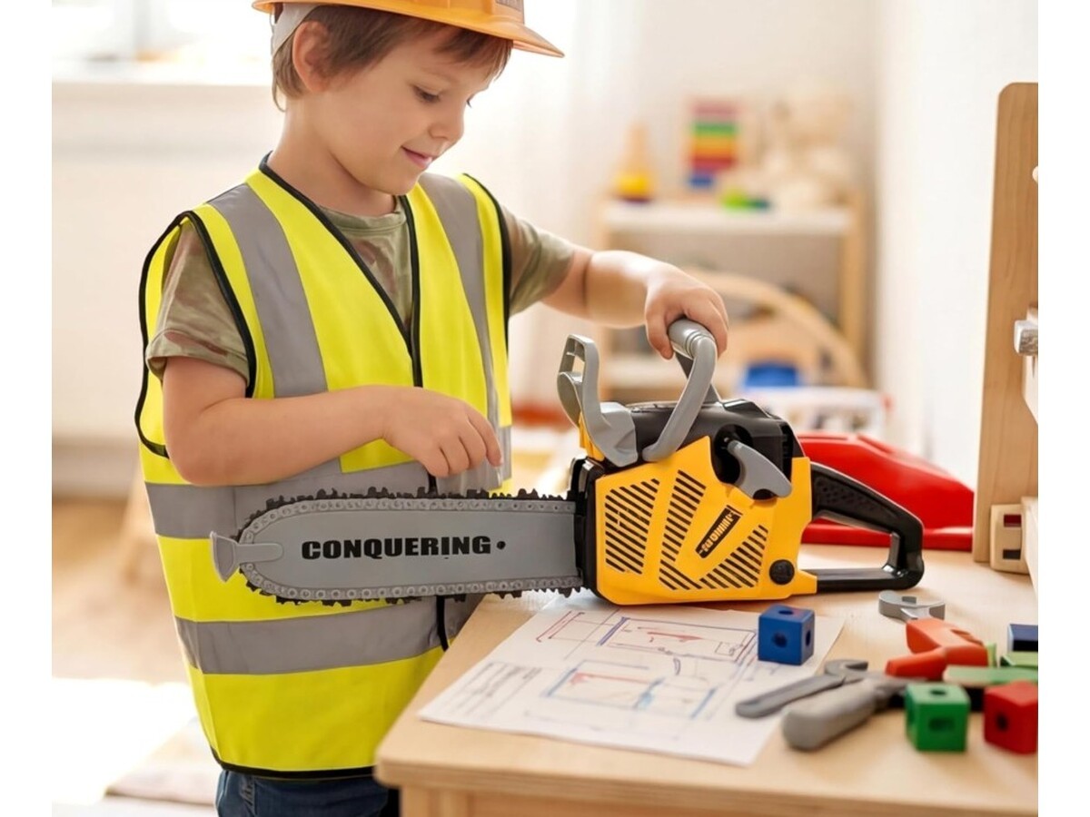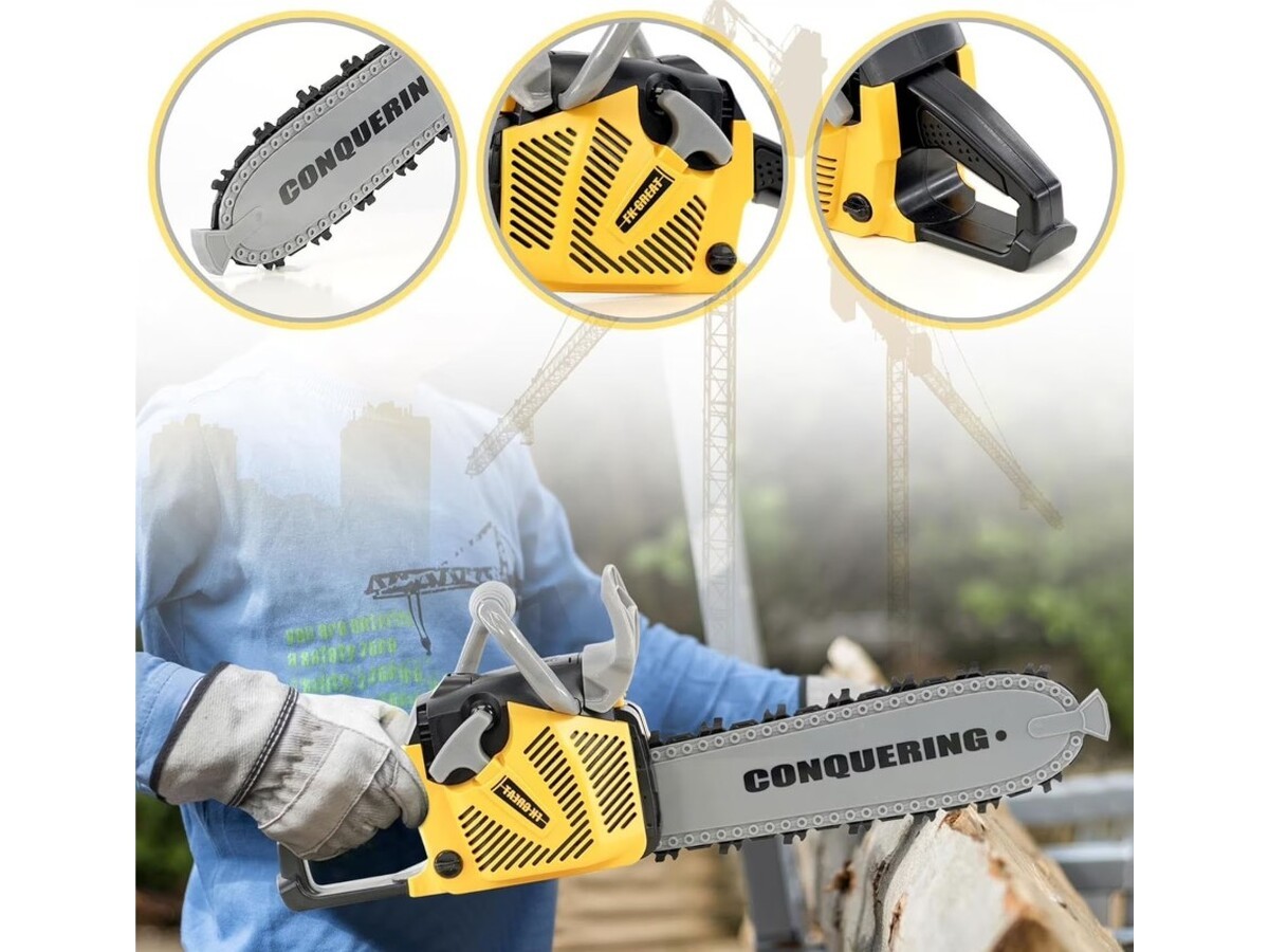 Zabawka ta z pewnością wywoła uśmiech na twarzy każdego dziecka. Piła po pociągnięciu rączki rozruchu "odpala" i wydaje dźwięki jak prawdziwa piła spalinowa! Dodatkowo posiada wygodny uchwyt a gumowy łańcuch obraca się jak prawdziwy, dzięki czemu zabawa jest jeszcze przyjemniejsza.