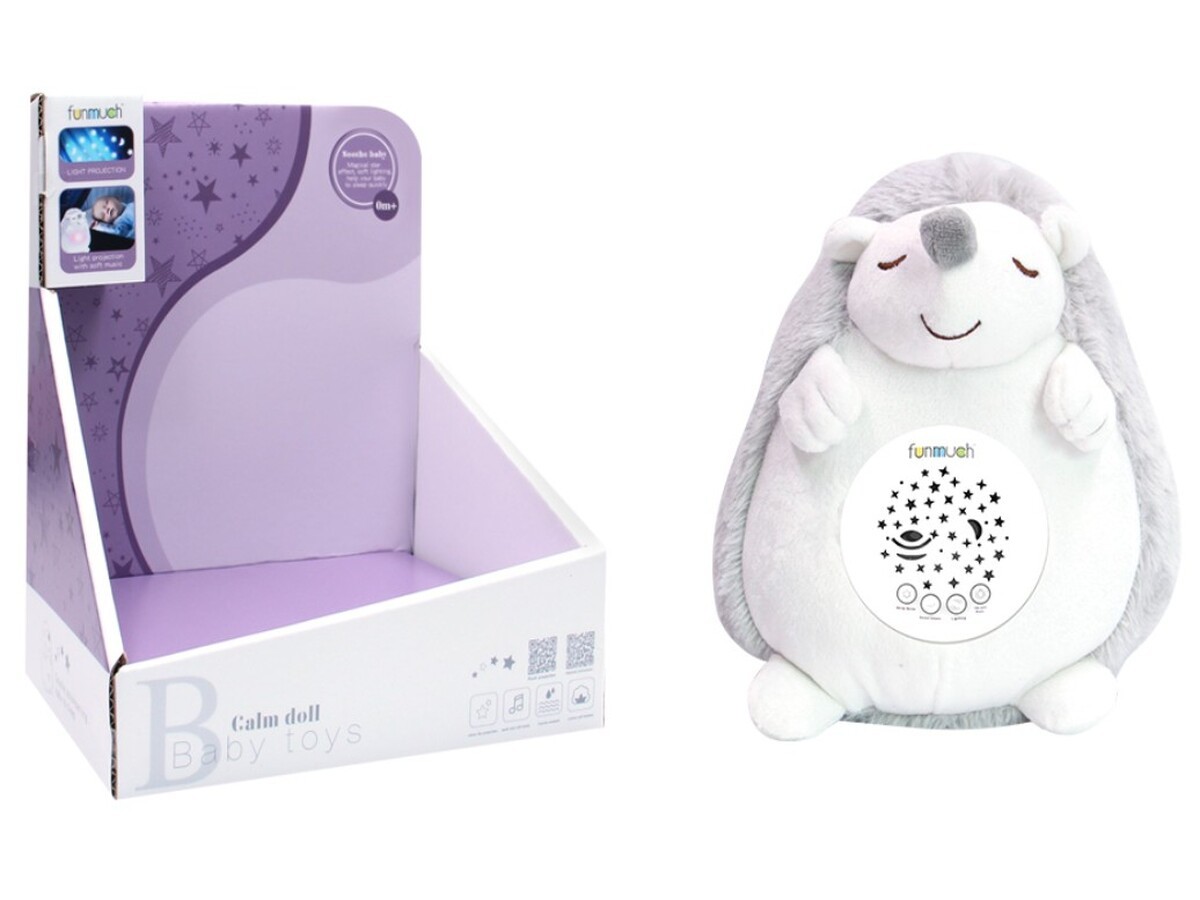 Biały szum i podświetlenieModuł w brzuszku jeżyka odtwarza delikatne i kojące melodie oraz uspokajające dźwięki natury, które pomagają szybciej zasnąć. Delikatne melodie zostały opracowane specjalnie po to, aby zapewnić dziecku dobre samopoczucie i powoli ukołysać je do snu. Funkcja projektora sprawi, że w pokoju nie będzie ciemno ale światło nie rozbudzi Twojego maluszka. To idealna propozycja dla maluchów, które boją się zasypiać w ciemności. Jeżyk rozświetla sufit i ściany gwiazdami oraz księżycem, tworząc wręcz bajkową atmosferę. | ![]() |