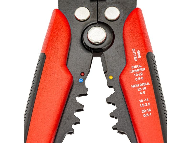 Ściągacz izolacji kabla to praktyczne narzędzie, które pozwoli na szybkie i precyzyjne usunięcie izolacji z przewodów płaskich oraz okrągłych. Aby ściągnąć izolację należy wsunąć przewód w podwójne szczęki a następnie zacisnąć rękojeść.