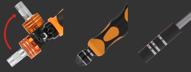 Naprawa nowoczesnych urządzeń elektronicznych wymaga nie tylko umiejętności, ale również wykorzystania odpowiedniego, precyzyjnego sprzętu. Producenci stosują różnego rodzaju zabezpieczenia, co sprawia, że do ich otwarcia wymagane są dodatkowe końcówki, które trudno znaleźć w podstawowych zestawach wkrętaków. Nasz zestaw zawiera aż 16 różnych końcówek (bitów) oraz 9 nasadek. Każda z nich posiada swoje własne miejsce, co pozwala na zachowanie porządku oraz sprawną organizację miejsca pracy, a tym samym jej szybkie i dokładne wykonanie. Komplet przeznaczony jest zarówno do napraw telefonów, tabletów jak również wszystkich innych urządzeń i sprzętów, które posiadają niestandardowe, drobne śruby.