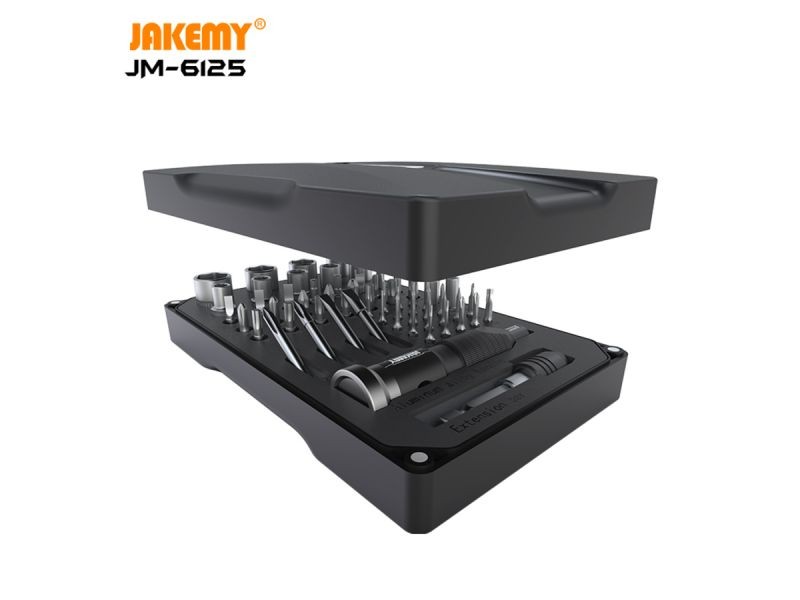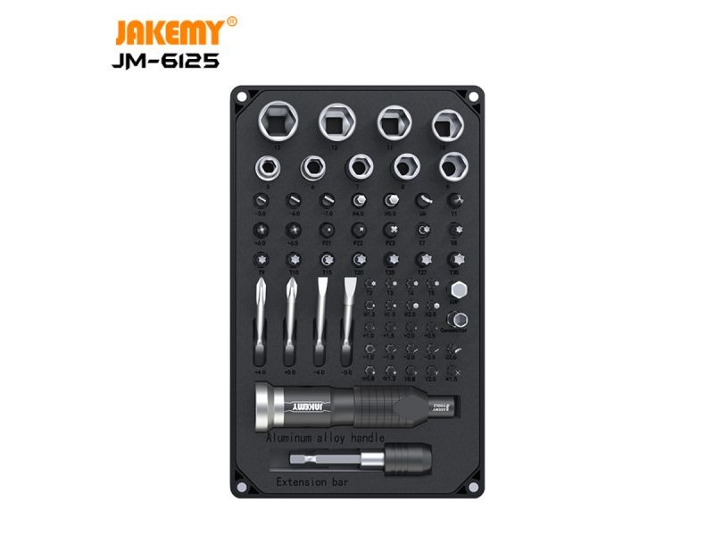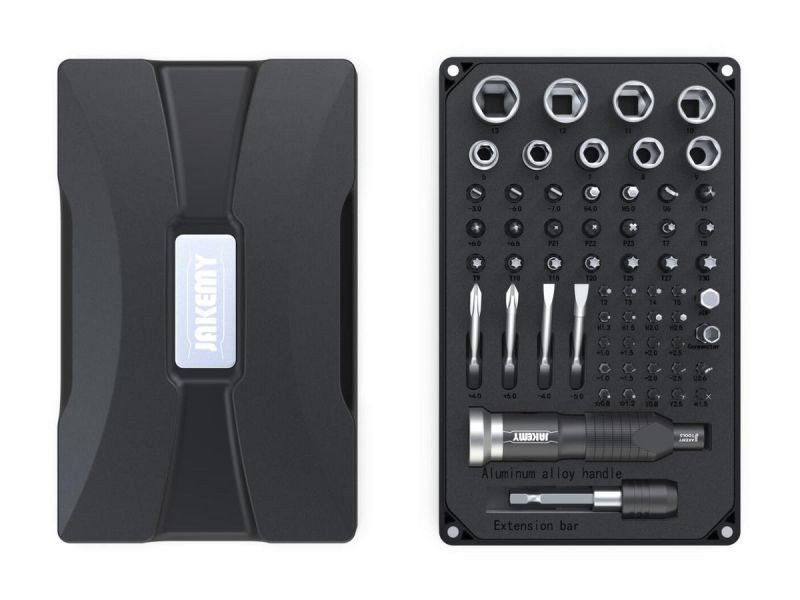 Naprawa nowoczesnych urządzeń elektronicznych wymaga nie tylko umiejętności, ale również wykorzystania odpowiedniego, precyzyjnego sprzętu. Producenci stosują różnego rodzaju zabezpieczenia, co sprawia, że do ich otwarcia wymagane są dodatkowe końcówki, które trudno znaleźć w podstawowych zestawach wkrętaków. Nasz zestaw zawiera aż 47 różnych końcówek (bitów) oraz 9 nasadek. Każda z nich posiada swoje własne miejsce, co pozwala na zachowanie porządku oraz sprawną organizację miejsca pracy, a tym samym jej szybkie i dokładne wykonanie. Komplet przeznaczony jest zarówno do napraw telefonów, tabletów jak również wszystkich innych urządzeń i sprzętów, które posiadają niestandardowe, drobne śruby.