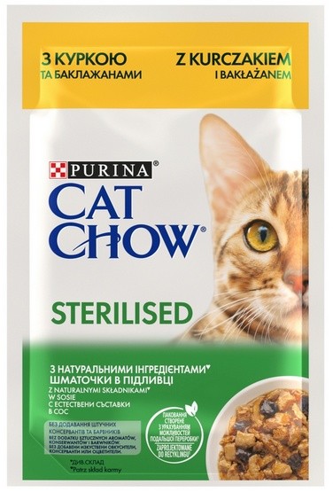 Purina Cat Chow Sterilised saszetka dla kotówPełnoporcjowa karma dla kotów. Z kurczakiem i bakłażanem w sosie.Twój kot jest niesamowity. Aby pomóc mu takim pozostać, w formule PURINA® CAT CHOW® wykorzystaliśmy wysokiej…