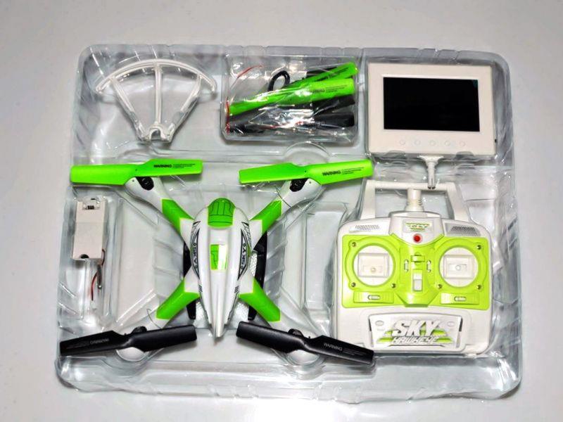Dzięki systemowi FPV 5.8GHz (First Person View) obraz z kamery zamontowanej na dronie jest przenoszony w czasie rzeczywistym na ekran LCD umieszczony na nadajniku. Umożliwia to lepszą kontrolę nad dronem, podgląd widoku i w tym samym czasie nagrywanie filmów podczas lotu.