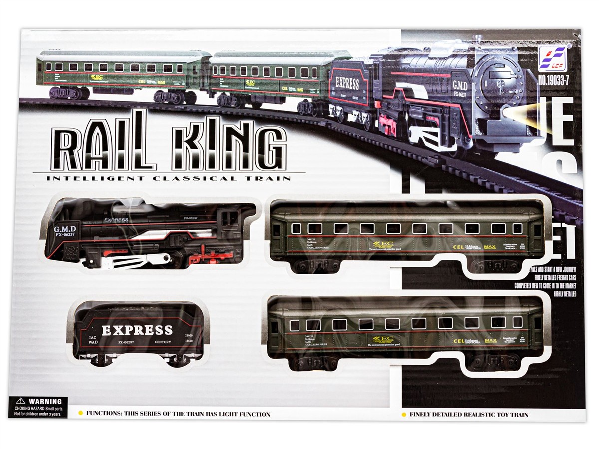 ![]() | Jakość i bezpieczeństwoPrecyzyjnie odwzorowany wygląd lokomotywy, wagoników i pozostałych elementów, a także atrakcyjna kolorystyka – zestaw kolejek Rail King został wykonany z wyjątkową dbałością o detale. |