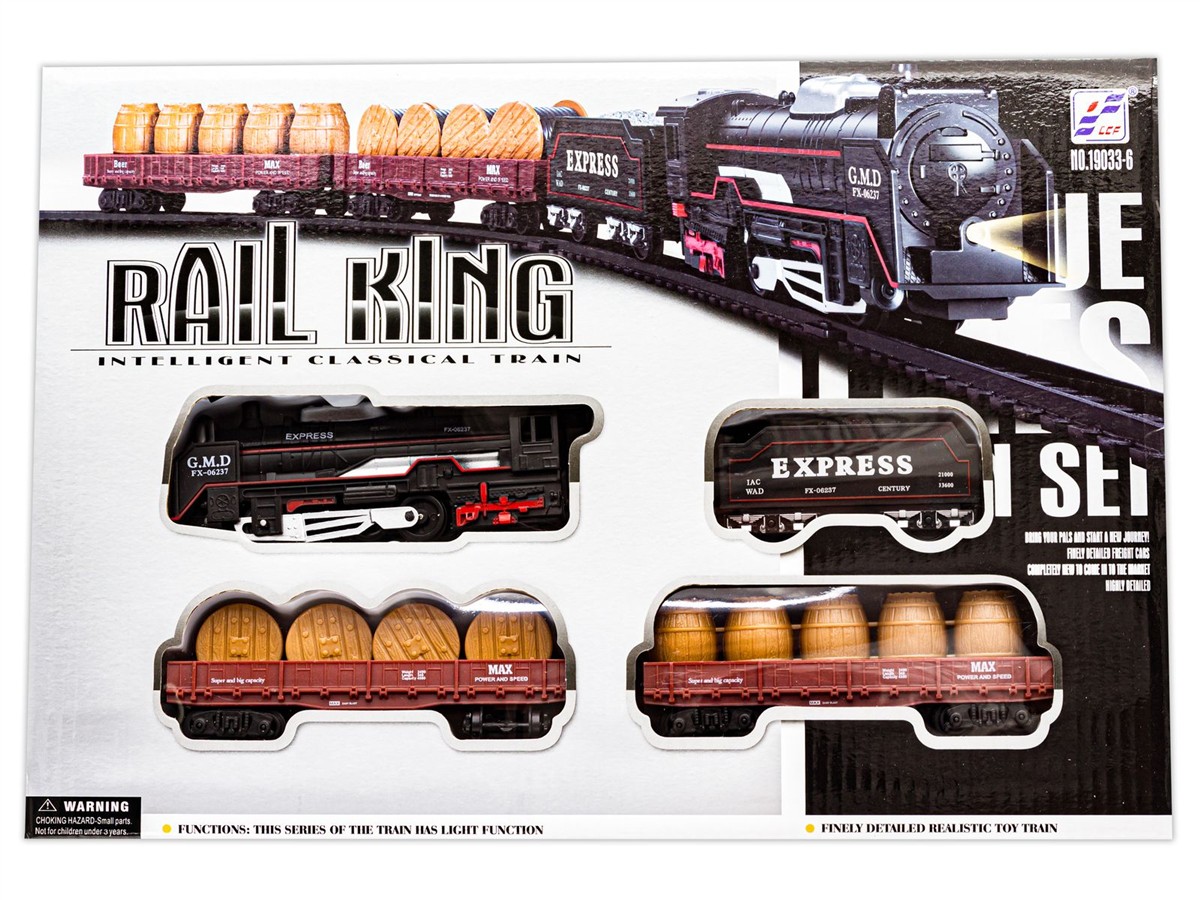 ![]() | Jakość i bezpieczeństwoPrecyzyjnie odwzorowany wygląd lokomotywy, wagoników i pozostałych elementów, a także atrakcyjna kolorystyka – zestaw kolejek Rail King został wykonany z wyjątkową dbałością o detale. |