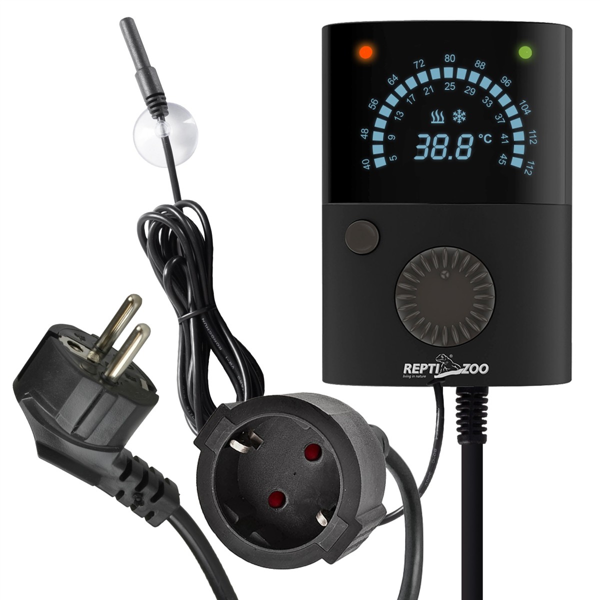 Termostat terrarystyczny lub akwarystyczny. Idealny do pracy urządzeniami takimi jak: kabel grzewczy, mata grzewcza, żarówka grzewcza, grzałka akwariowa i inne. Stale monitoruje i wyświetla obecną temperaturę wewnątrz zbiornika. Jego programowanie jest ultra łatwe.