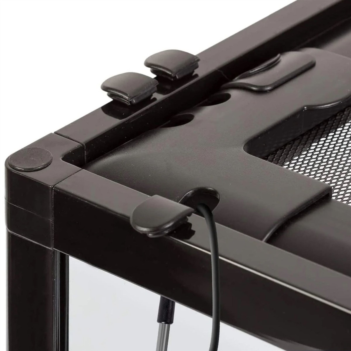 - Nóżki pod terrarium: możesz spokojnie położyć matę grzewczą lub ustawić drugie terrarium na górze.