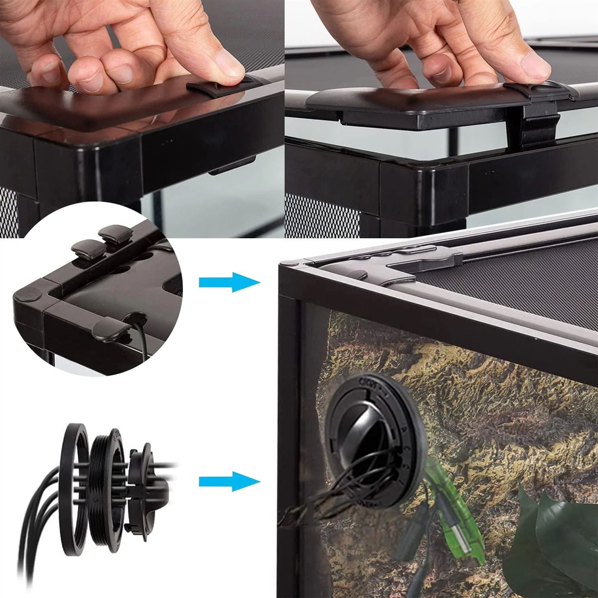 Wiele terrariów to kompromisy – słaba siatka, szklana pokrywa z paskiem z perforowanej blachy, trudny montaż, przecieki, brak zabezpieczeń.